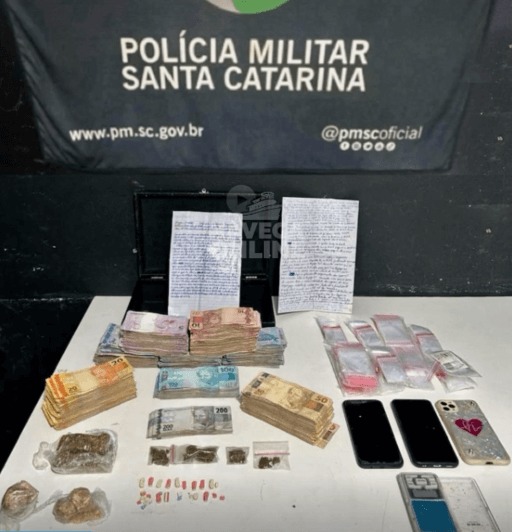Um homem foi preso pelos crimes de tráfico de drogas e organização criminosa no bairro São Paulo, em Navegantes. A guarnição da Polícia Militar recebeu denúncias sobre a comercialização de entorpecentes em um estabelecimento comercial da região e se deslocou ao endereço para averiguação. Durante a abordagem, os policiais localizaram porções de drogas expostas no ambiente, o que indicaria a prática de tráfico. Em buscas no local e em uma área anexa, foram apreendidos: