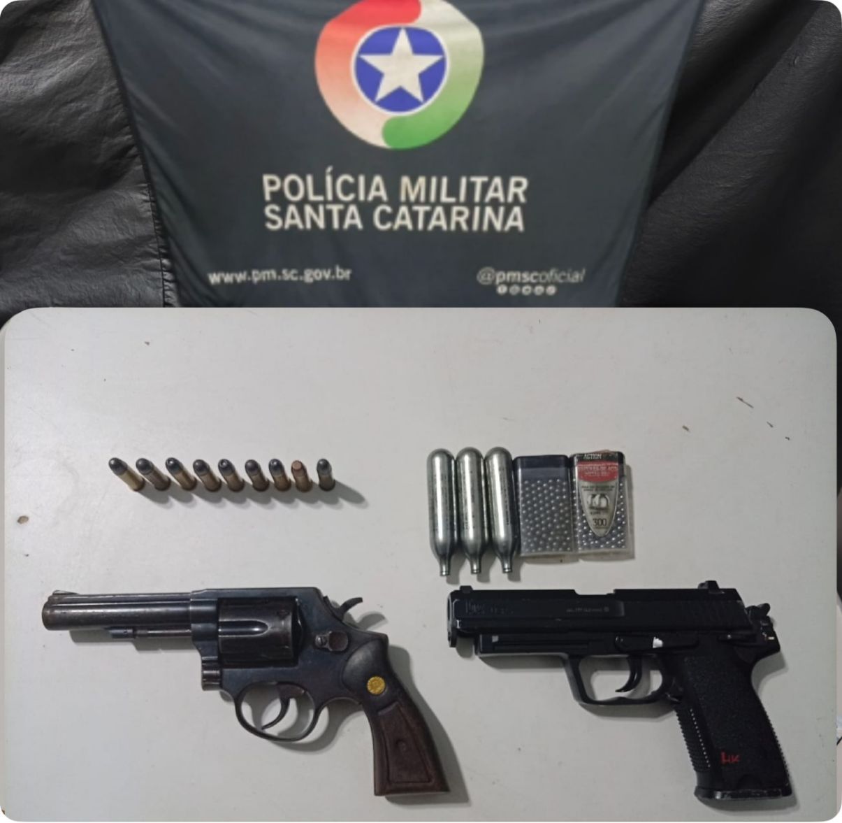 No decorrer das buscas, um revólver calibre .38, acompanhado de nove munições intactas, foi localizado no interior de um dos veículos utilizados pelo grupo. O responsável pelo veículo assumiu a propriedade da arma, informando não possuir autorização legal para sua posse. Em outro veículo, foi apreendido um simulacro de arma de fogo do tipo airsoft, além de acessórios. Os envolvidos foram encaminhados à Polícia Federal, onde foi instaurado procedimento para apuração de possível redução à condição análoga à de escravo, em seguida foram conduzidos à Central de Plantão Policial pelos crimes de posse irregular de arma de fogo e porte ou posse de simulacro. Os adolescentes ficaram sob responsabilidade do Conselho Tutelar.