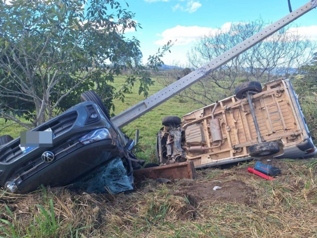 Um grave acidente de trânsito foi registrado na tarde deste sábado (21), na SC-414, no bairro Escalvados, em Navegantes. A colisão envolveu uma van Fiat Ducato – com placas de Luiz Alves – e uma picape Volkswagen Saveiro – com placas de Penha. Conforme relato oficial da Polícia Militar Rodoviária, a Ducato transitava pela rodovia SC-414 no sentido Navegantes x Luiz Alves, quando no quilômetro 3, ao ultrapassar a Saveiro que trafegava no mesmo sentido, este não percebeu, e também iniciou a manobra de ultrapassagem ao veículo à sua frente, momento em que acabou colidindo com a Ducato; ambos saíram da pista e capotaram, quando a Saveiro colidiu no poste da rede elétrica às margens da rodovia.