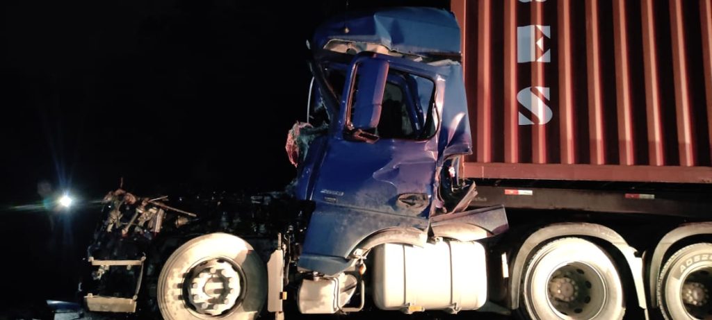 Colisão traseira entre carretas deixa motorista preso nas ferragens em Navegantes