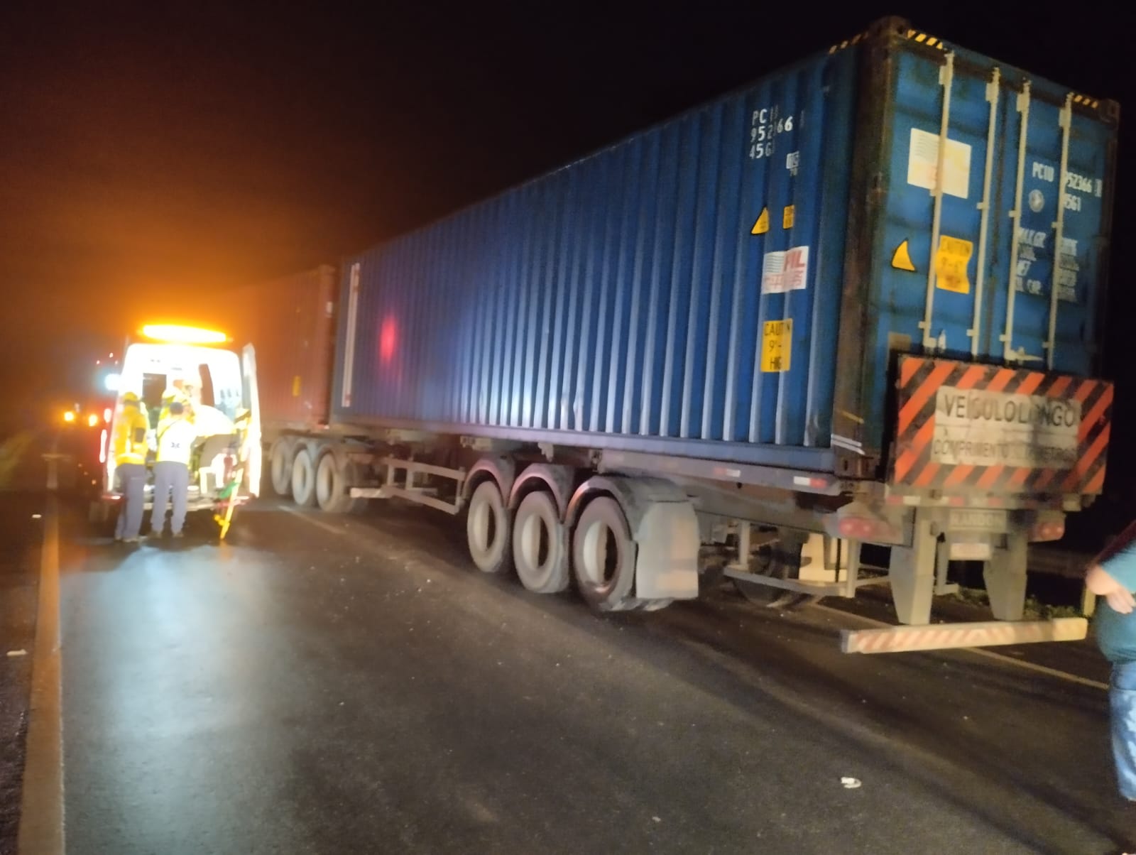 Um acidente envolvendo duas carretas mobilizou o Corpo de Bombeiros Militar de Navegantes na madrugada desta sexta-feira (5), por volta de 0:30h, no KM 12 da BR-470. De acordo com os bombeiros, um dos motoristas foi encontrado consciente e orientado, mas apresentava ferimentos lacerantes nas pernas e suspeita de fratura nos braços. Ele ficou preso às ferragens e precisou ser desencarcerado da cabine do veículo antes de receber atendimento médico. Em seguida, foi protocolado e encaminhado ao Hospital de Navegantes. O condutor do outro veículo não sofreu ferimentos e não precisou de atendimento. Após o resgate, a cena ficou sob responsabilidade da Polícia Rodoviária Federal (PRF) para os demais procedimentos.