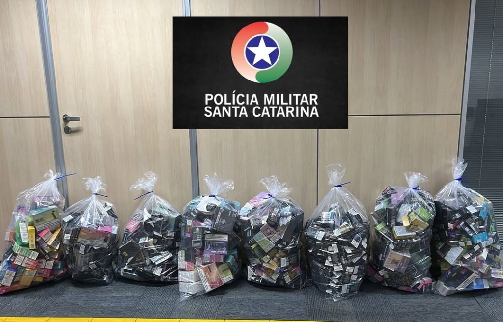 A Polícia Militar de Navegantes apreendeu uma grande quantidade de cigarros eletrônicos e essências de origem ilícita no bairro Gravatá. A operação foi conduzida por guarnições do 25º Batalhão de Polícia Militar, após denúncias anônimas apontarem a retomada das atividades criminosas por parte de um homem já conhecido por envolvimento com contrabando. De acordo com os policiais, o suspeito utilizava um apartamento alugado exclusivamente para armazenar os produtos contrabandeados, que eram vendidos a partir de uma conveniência localizada à beira-mar. Os policiais flagraram o momento exato em que o homem oferecia os cigarros eletrônicos a um cliente. Durante as buscas no imóvel, foram encontradas aproximadamente mil unidades de cigarros eletrônicos e cerca de 100 frascos de essências. Todo o material foi apreendido. O homem recebeu voz de prisão e foi encaminhado à Polícia Federal, onde responderá por crimes relacionados ao contrabando. A Polícia Militar reforça que denúncias podem ser feitas de forma anônima pelo telefone 190 ou pelo aplicativo PMSC Cidadão.