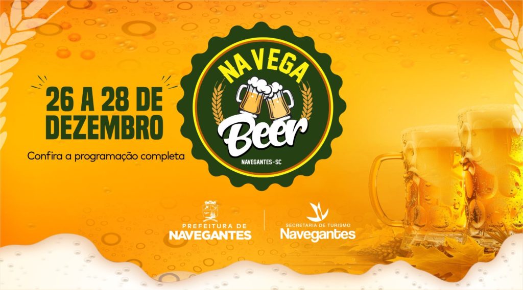 A Prefeitura de Navegantes promove, de 26 a 28 de dezembro, o 3º Festival Cervejeiro “Navega Beer”, que promete movimentar a cidade com uma programação diversificada, reunindo bandas locais e regionais além de opções de culinária e vários tipos de cervejas. A iniciativa integra o calendário de verão do município e busca valorizar a cultura, o entretenimento e o turismo local.