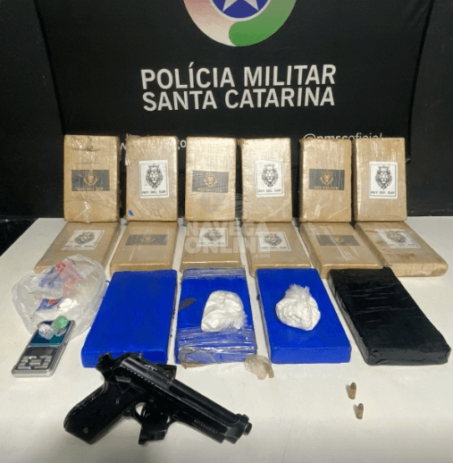 Na sequência, os policiais se deslocaram até a residência do suspeito, onde foram localizados aproximadamente 17 quilos de cocaína, uma munição calibre 7,65, uma munição calibre 9 mm e uma balança de precisão.