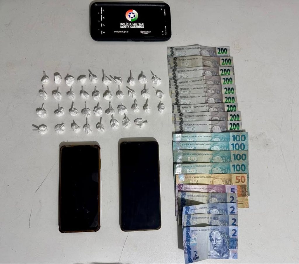 Na manhã deste sábado (20), a Polícia Militar de Santa Catarina prendeu um homem suspeito de tráfico de drogas no bairro São Paulo, em Navegantes. Durante a ação, a PM apreendeu substâncias ilícitas, dinheiro, aparelhos celulares e um veículo utilizado para o tráfico. De acordo com as autoridades, foram encontradas 38 porções de cocaína com o acusado, além de R$ 2.263,00 em espécie. Também foram apreendidos dois celulares, que podem fornecer mais informações sobre o envolvimento do homem em atividades criminosas. O veículo utilizado no crime foi recolhido e passará por perícia. A operação faz parte do esforço contínuo da Polícia Militar de Santa Catarina para combater o tráfico de drogas e manter a ordem e segurança nas cidades catarinenses.