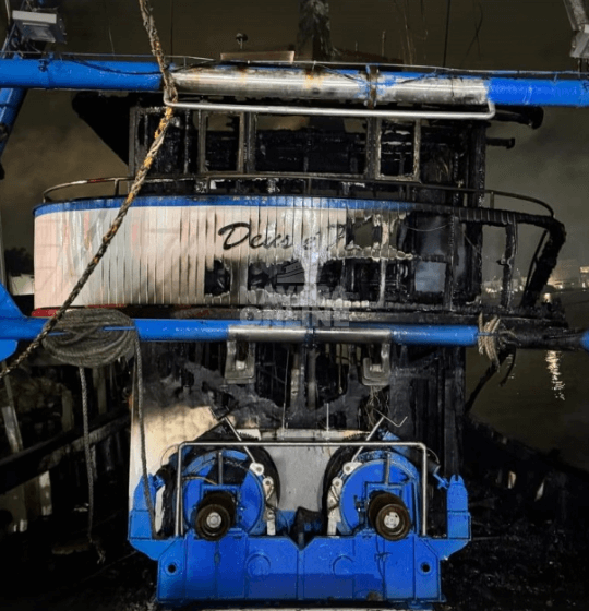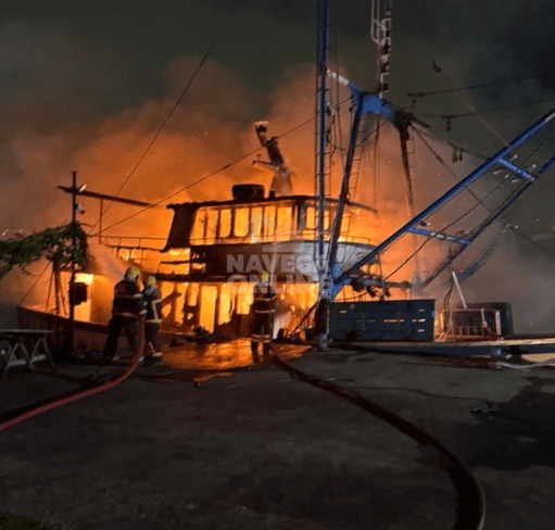 Incêndio atinge embarcação de pesca e a deixa parcialmente destruída em Navegantes
