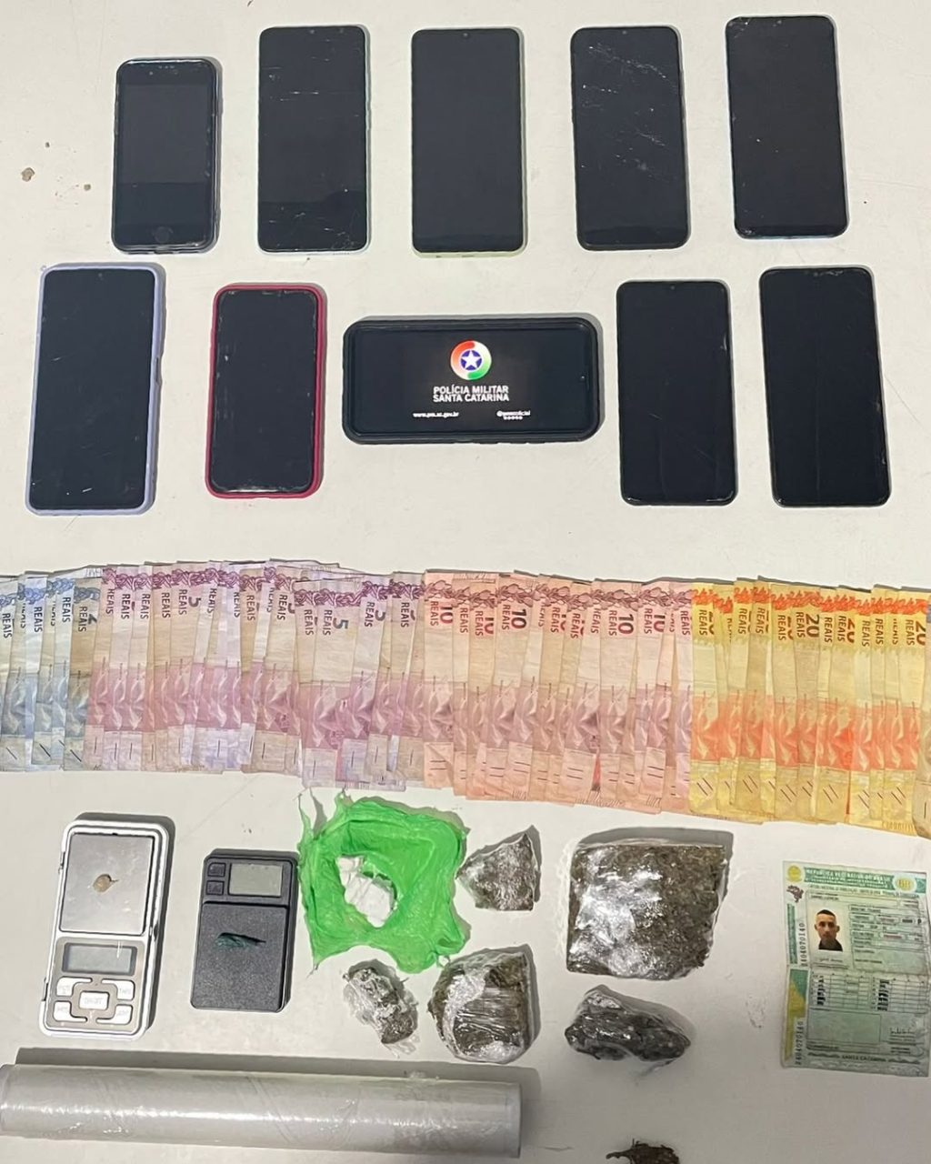 A Polícia Militar de Santa Catarina prendeu dois homens por tráfico de drogas no bairro São Domingos, em Navegantes. A ação ocorreu após a corporação receber informações sobre a existência de um ponto de comércio ilegal de entorpecentes nas proximidades do aeroporto. Durante o monitoramento da área, os policiais flagraram dois homens comprando drogas diretamente com um suspeito. Um dos abordados confessou ter adquirido uma porção de crack por R$10 e afirmou já ter comprado outras vezes no mesmo local. Com base nas informações, os agentes foram até a residência do suspeito e localizaram R$700 em dinheiro trocado. O homem foi preso em flagrante.