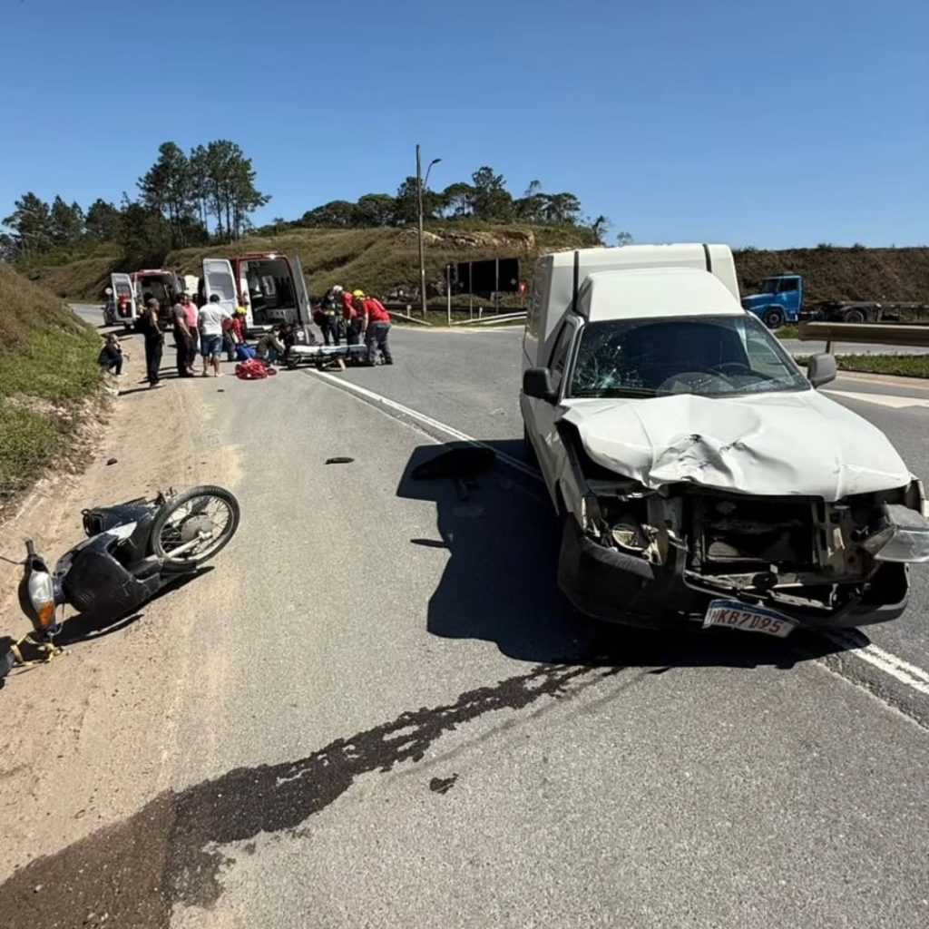 Um acidente no trevo que liga Navegantes a Luiz Alves e Ilhota deixou uma mulher em estado grave. De acordo com populares informaram aos Bombeiros Voluntários de Navegantes, que atenderam a ocorrência, o condutor de uma Fiorino tentou entrar na SC-414, mas acabou colidindo com uma motocicleta Honda Biz. Após a realização dos primeiros socorros pelos Bombeiros Voluntários de Navegantes, a vítima foi conduzida ao Hospital Marieta pelo Samu. A Polícia Militar Rodoviária de SC não se pronunciou sobre as responsabilidades pelo acidente. O novo caso entra para a lista das inúmeras ocorrências de trânsito neste acesso, que foi inaugurado em maio de 2021. Desde então, dezenas de pessoas já se feriram no local, onde até óbitos já foram registrados, reforçando assim, a necessidade de mais atenção a todos os condutores que por ali passam.