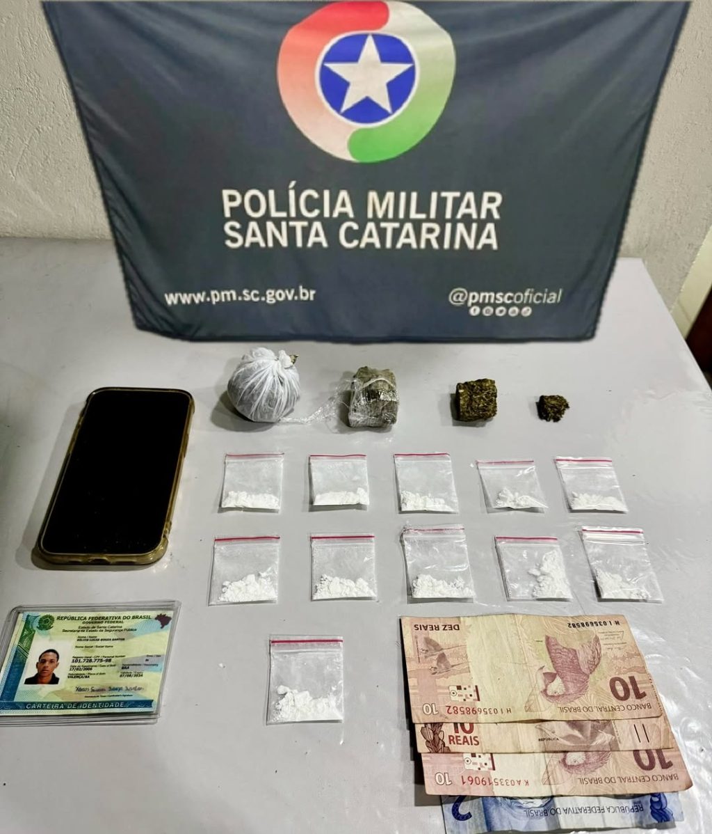 Polícia Militar frustra ação de tráfico de drogas em Navegantes; maconha e cocaína foram apreendidas