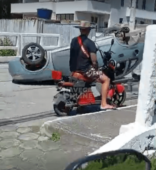 A colisão entre dois automóveis deixou um Chevrolet Corsa Sedan – com placas de Joinville – capotado na manhã deste sábado (8) no bairro Meia Praia, em Navegantes. O acidente foi na Rua Geraldo José Borba, eu uma ponte da Avenida Radial Ivo Silveira. A Polícia Militar e os Bombeiros Militares estiveram no local para o socorro aos feridos – sem gravidade – e também para apurar as responsabilidades. Confira o vídeo a seguir.