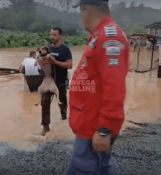 Os Bombeiros Voluntários de Navegantes se deslocaram até Luiz Alves para auxiliar a população atingida pelas fortes chuvas que castigaram o município. A cidade foi a que mais recebeu precipitação de chuva durante a segunda-feira (24), o que gerou alagamentos, suspensão de serviços essenciais e colocou Luiz Alves em alerta máximo. De acordo com a corporação, as equipes estão atuando no resgate de moradores e também de animais, garantindo que todos sejam levados para locais seguros. Em nota, reforçaram o compromisso com a proteção da vida em todas as formas: “Tratamos igual todas as formas de vida”. A enxurrada causou transtornos em diversas regiões do município, deixando famílias ilhadas e demandando reforço no atendimento. A atuação conjunta dos Bombeiros Voluntários de Navegantes tem sido fundamental para acelerar a retirada de pessoas e seus animais de áreas de risco. Confira imagens no vídeo a seguir.