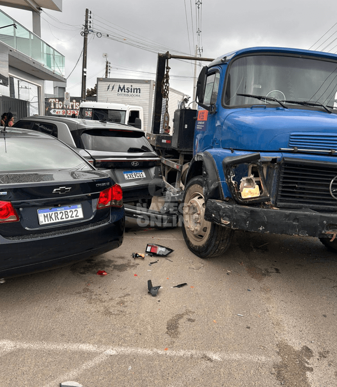 Um grave acidente de trânsito mobilizou equipes de segurança e emergência na tarde desta quinta-feira (29), na Rua José Francisco Laurindo, no bairro São Domingos, em Navegantes. A ocorrência foi registrada por volta das 15h. A colisão envolveu dois caminhões e quatro automóveis. Apesar do impacto, não houve registro de feridos. O choque, no entanto, resultou em vazamento de gasolina e óleo na via, exigindo atenção das equipes dos Bombeiros Militares no local. As circunstâncias que levaram ao acidente não foram divulgadas oficialmente, mas populares sugeriram que o caminhão azul teria atingido os demais veículos que se encontravam estacionados. Confira imagens no vídeo abaixo.