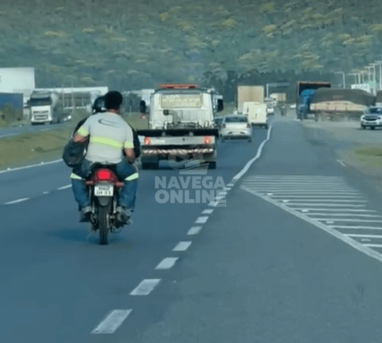 Um ato de imprudência no trânsito foi flagrado circulando pela BR-470, em Navegantes, próximo à saída do trevo que liga Luiz Alves a Ilhota. Um vídeo feito por outro motorista mostra um passageiro de motocicleta trafegando sem capacete pela via, que é uma rodovia federal. O entroncamento tem grande movimentação de veículos e que exige atenção redobrada devido ao fluxo intenso de veículos.